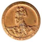 In addition to the above “Official Releases”, I have come across this “St. Christopher” medal. I have only seen this in bronze and in fact I own a copy. It is the same size as the “Official” bronze medal. However, I have never been able to find any type of documentation for this medal and since the reverse is the same as the “Official” reverse struck by the Metal Arts Co. of Rochester, New York, I suspect that it is in fact a “mule” produced by someone working for the company at the time, but not officially released. Note that it appears to have a slightly different appearance and patina than the above bronze medals. Extremely scarce. |